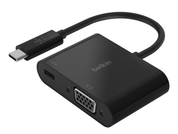 Belkin USB-C to VGA + Charge Adapter – Adaptador de vídeo – 24 pin USB-C macho a HD-15 (VGA), USB-C (solo alimentación) hembra – negro – compatibilidad con 1080p, USB Power Delivery (60W)